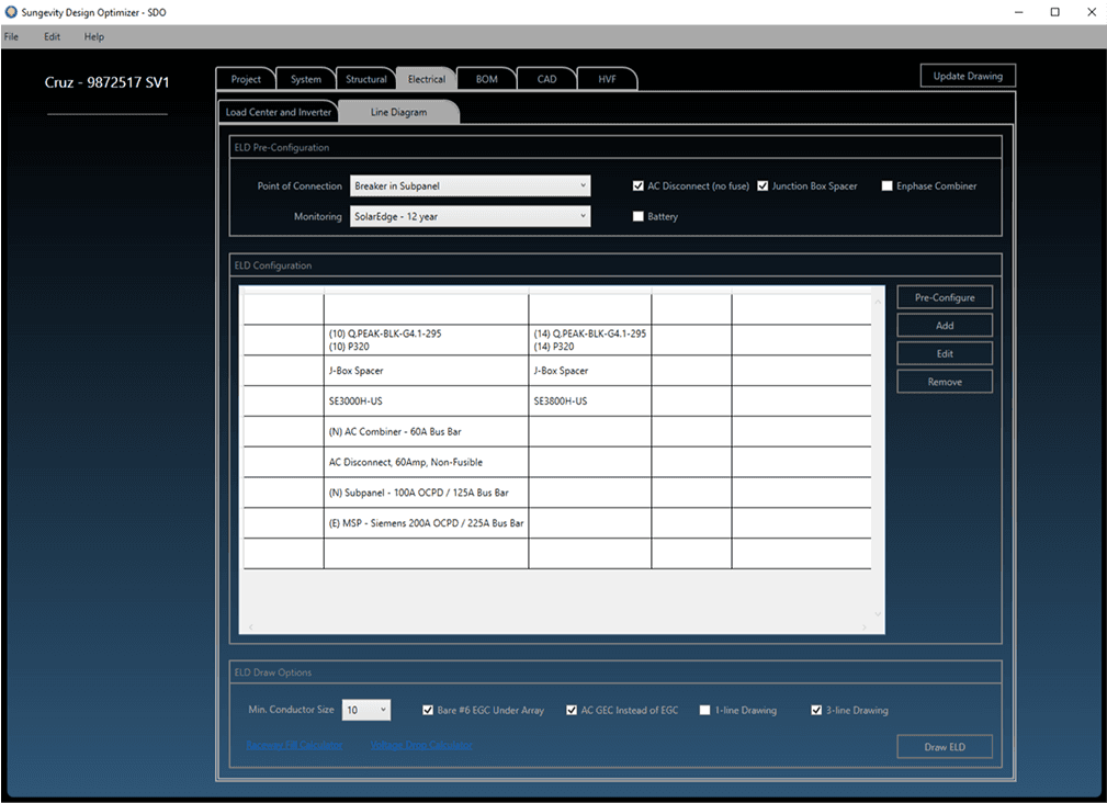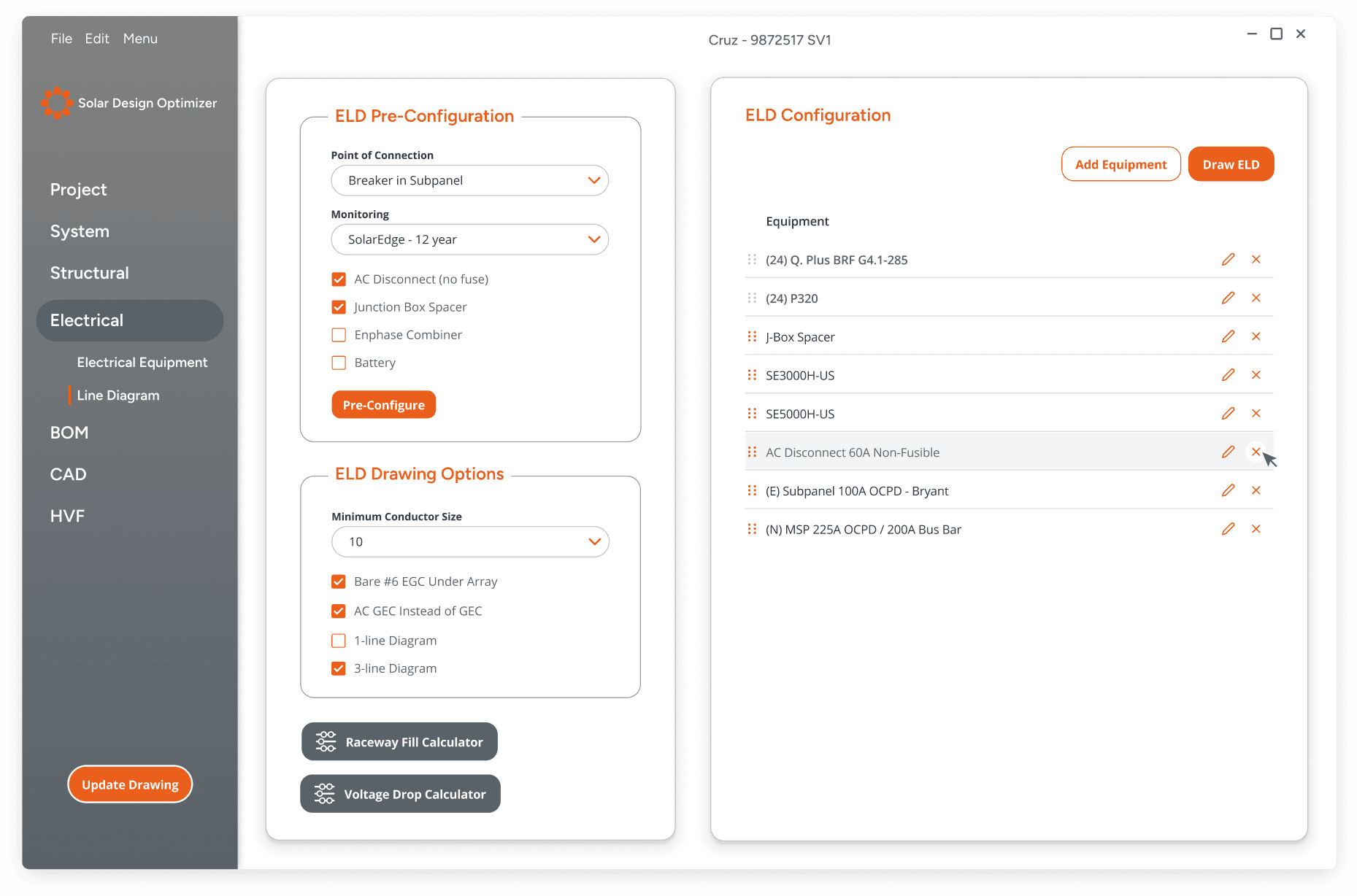 Visible Calculation Tools: Prominent buttons for Raceway Fill and Voltage Drop calculators enhance discoverability and streamline the setup process.