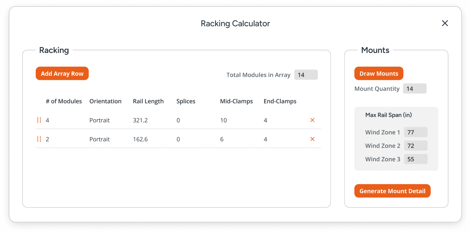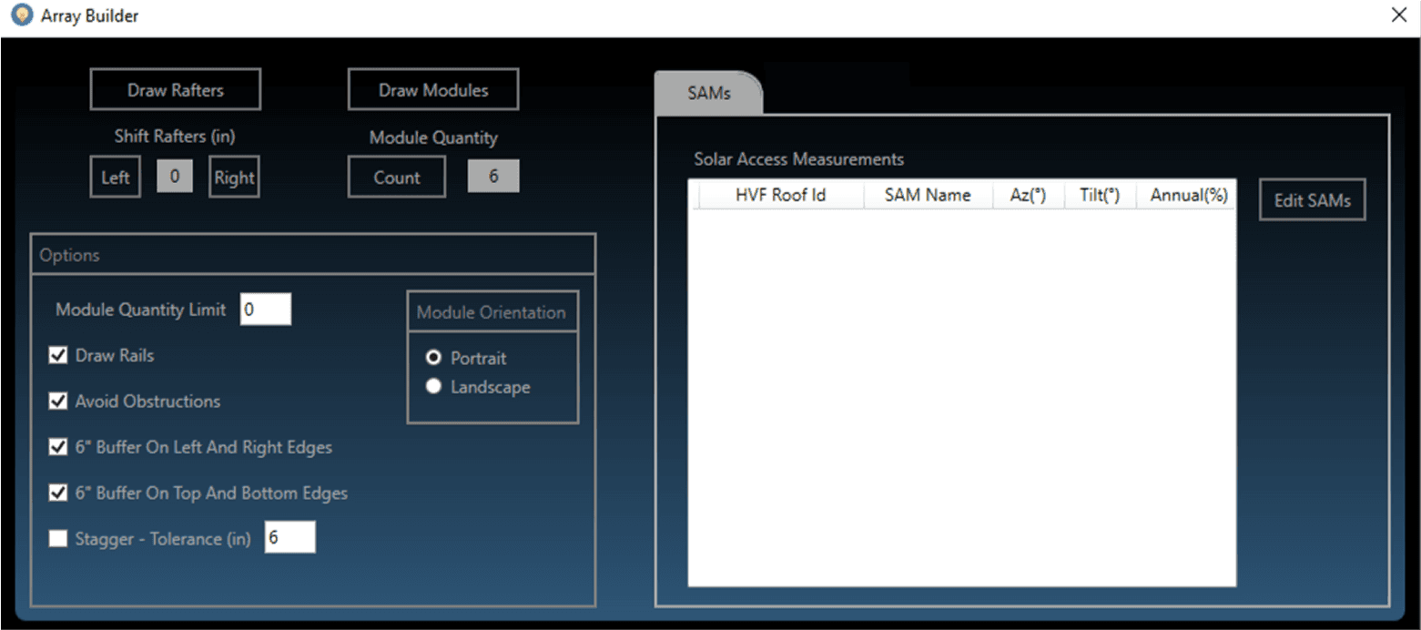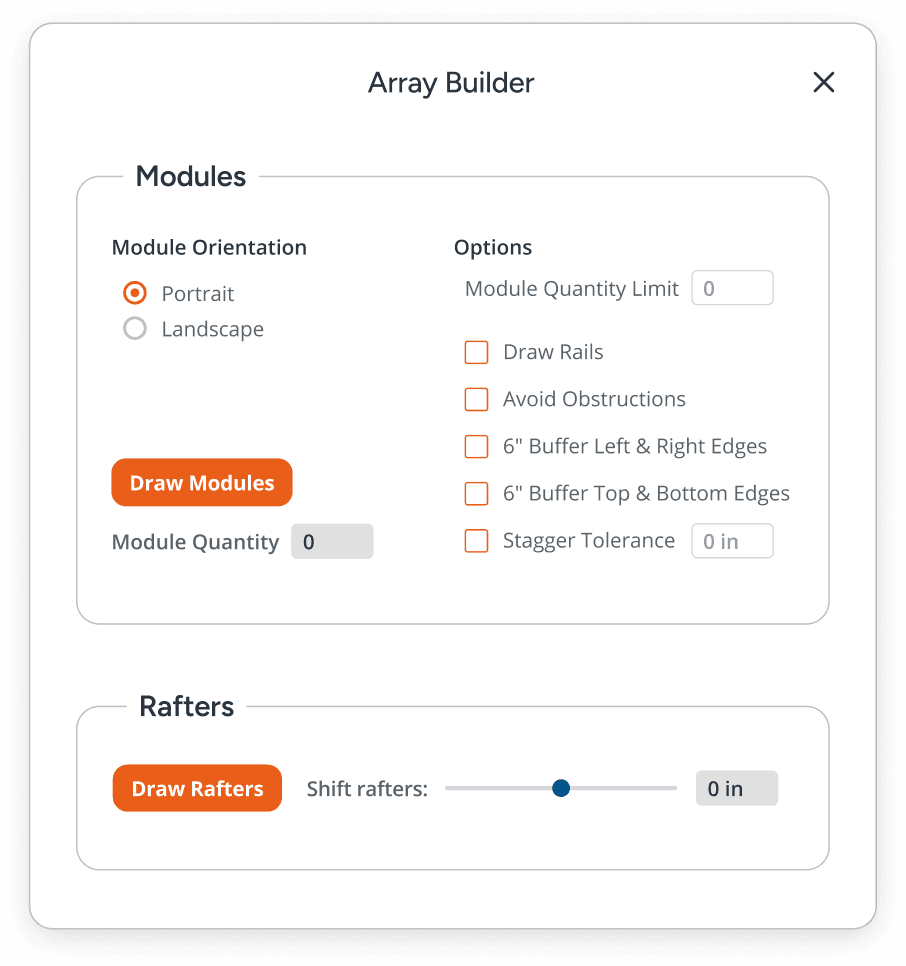 Intuitive Layout: Fields and buttons are now grouped into distinct, labeled sections ("Modules" and "Rafters") for a more focused and streamlined workflow.