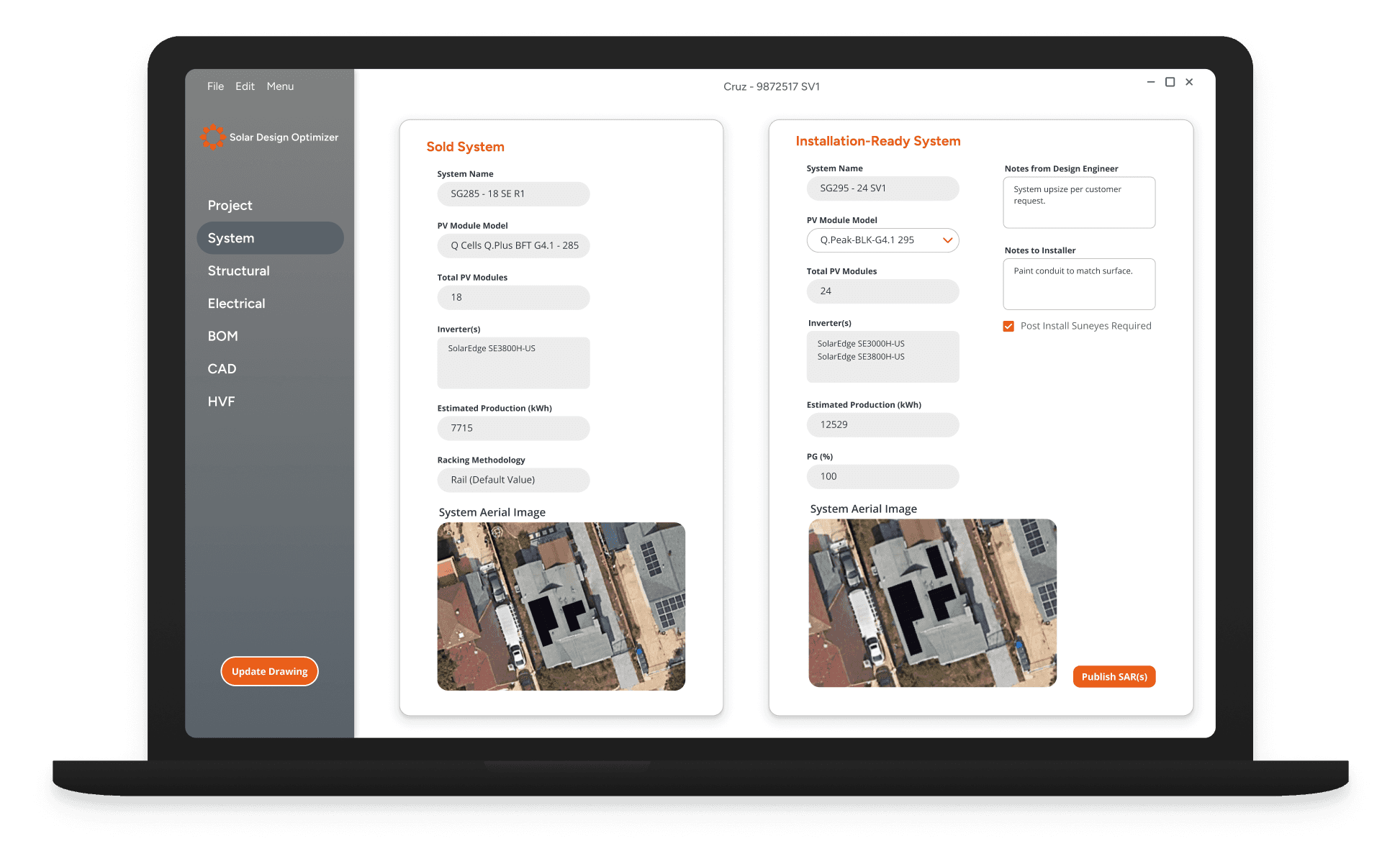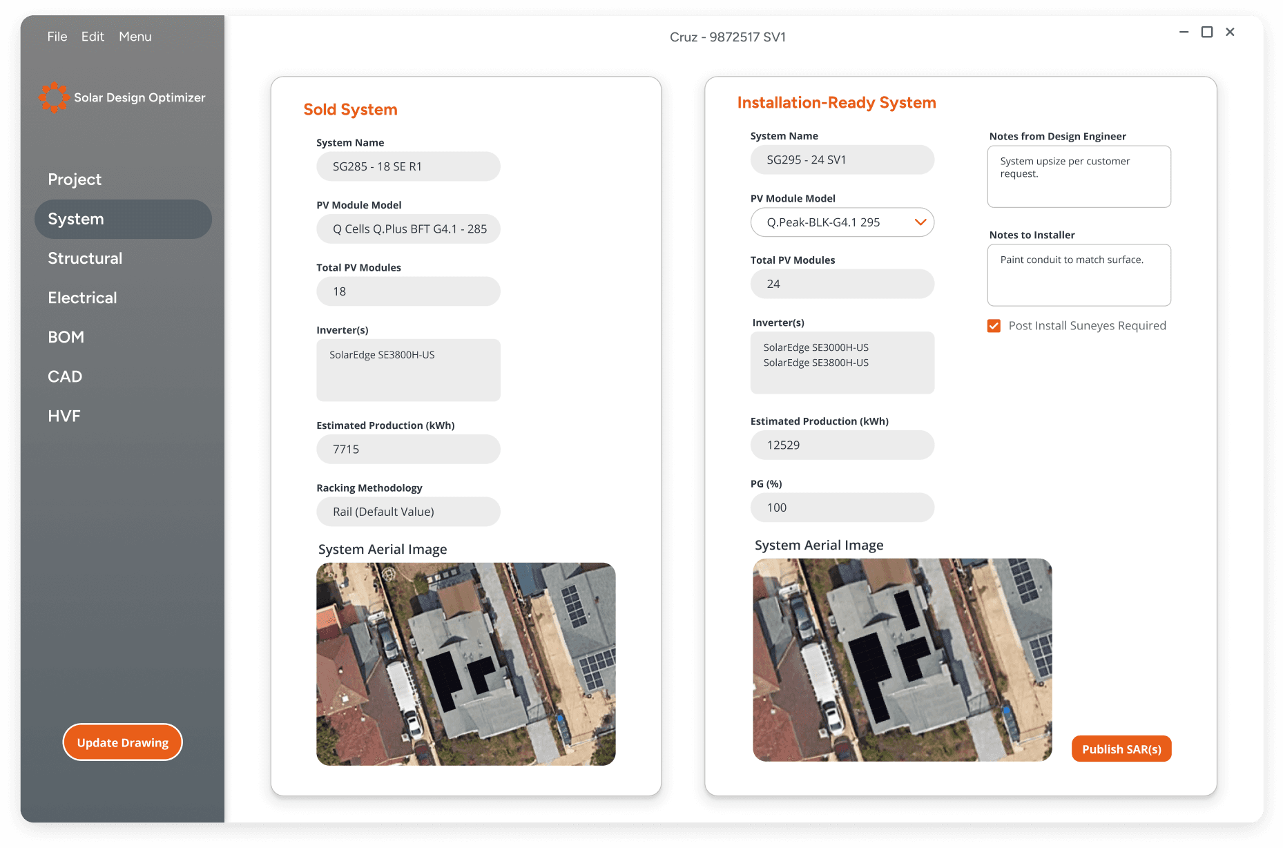 Intuitive Section Titles: Updated the section titles (“Sold System” and “Installation-Ready System”) to more accurately reflect their content, improving user understanding of the screen layout.