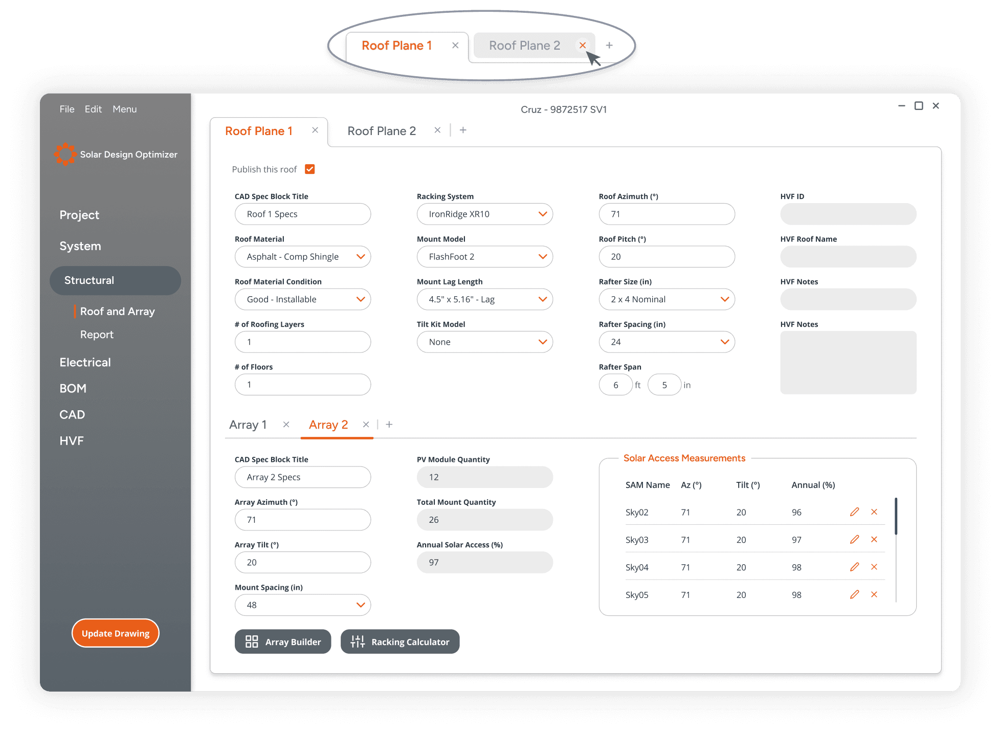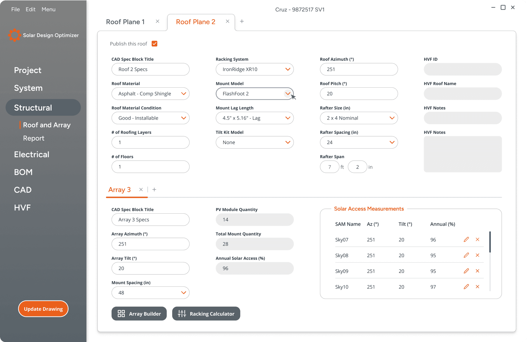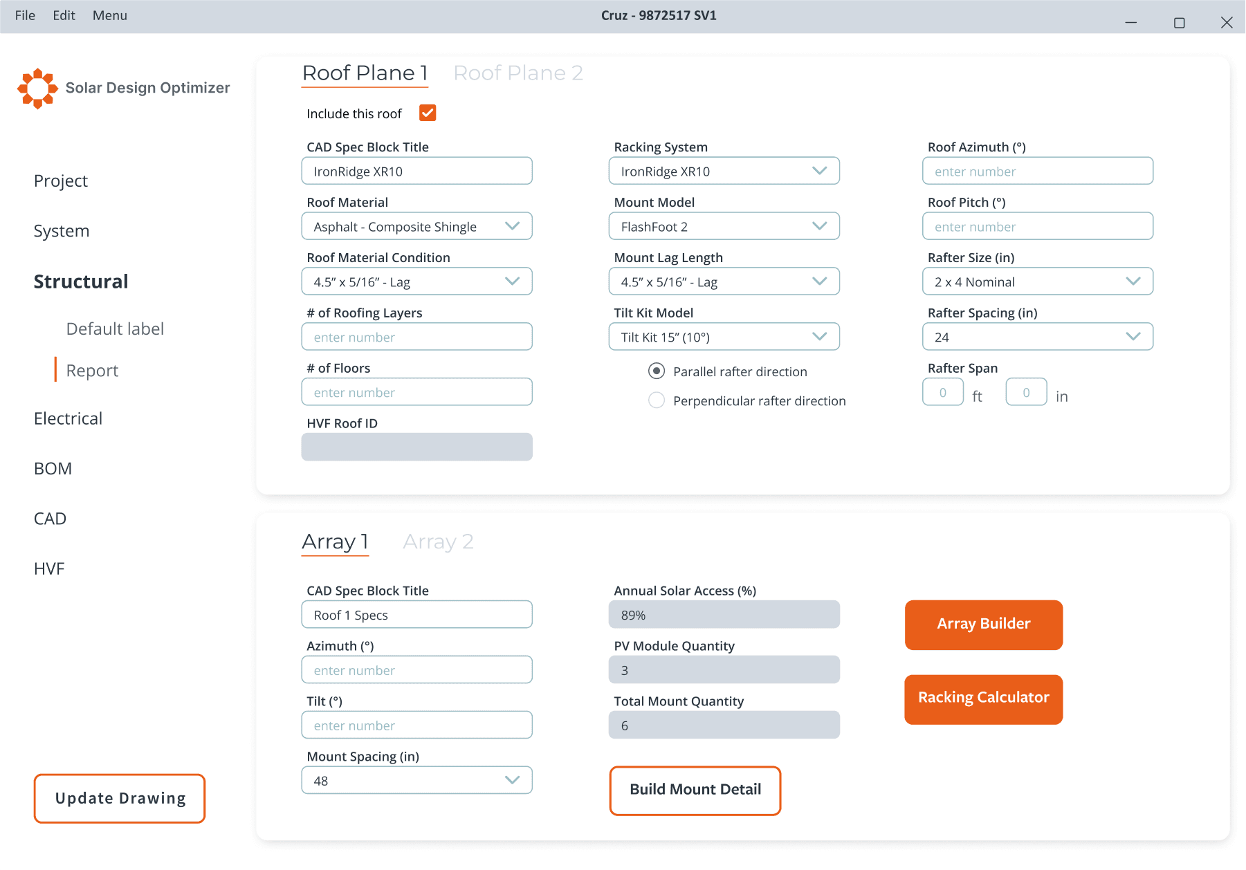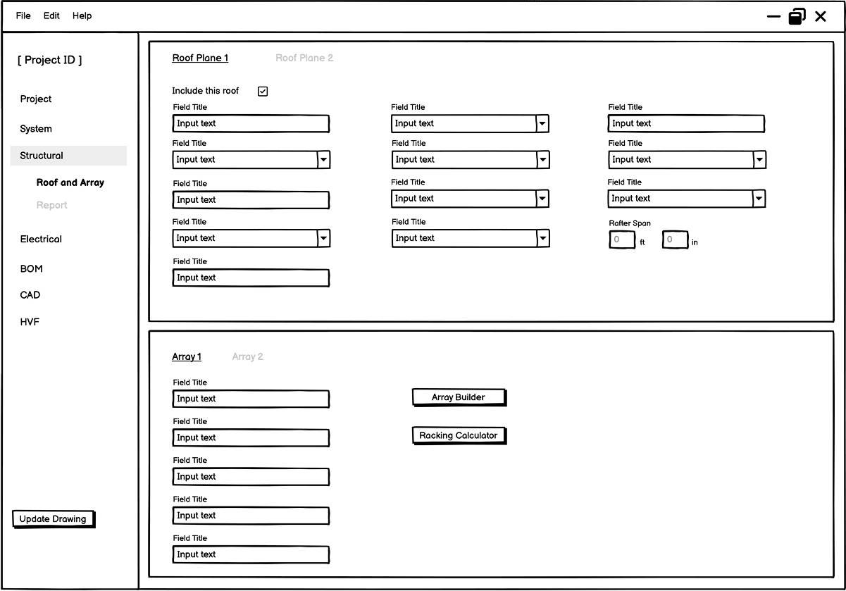 By strategically streamlining navigation, refining input styles, and merging the Roof Plane and Array sections into a cohesive, tabbed layout, the screen transformed into a more efficient and user-friendly workspace.